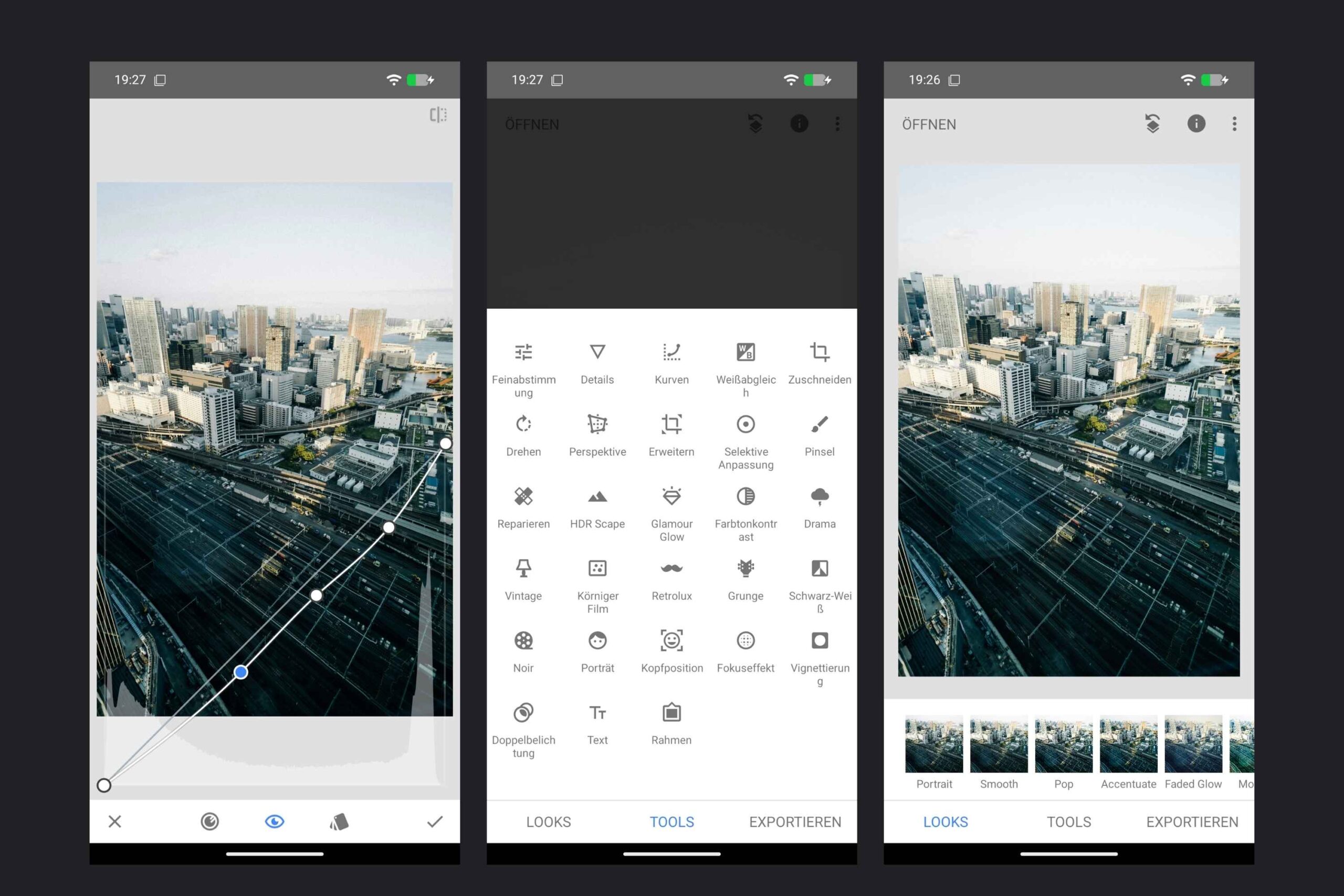 Für professionelle Bearbeitung mit umfangreichen Features: Snapseed (kostenlos, offline) oder Lightroom Mobile (RAW-Support). Für datenschutzbewusste Nutzer: Photo Editor und Image Toolbox aus dem F-Droid Store – beide Open Source, werbefrei und ohne Cloud-Zwang.