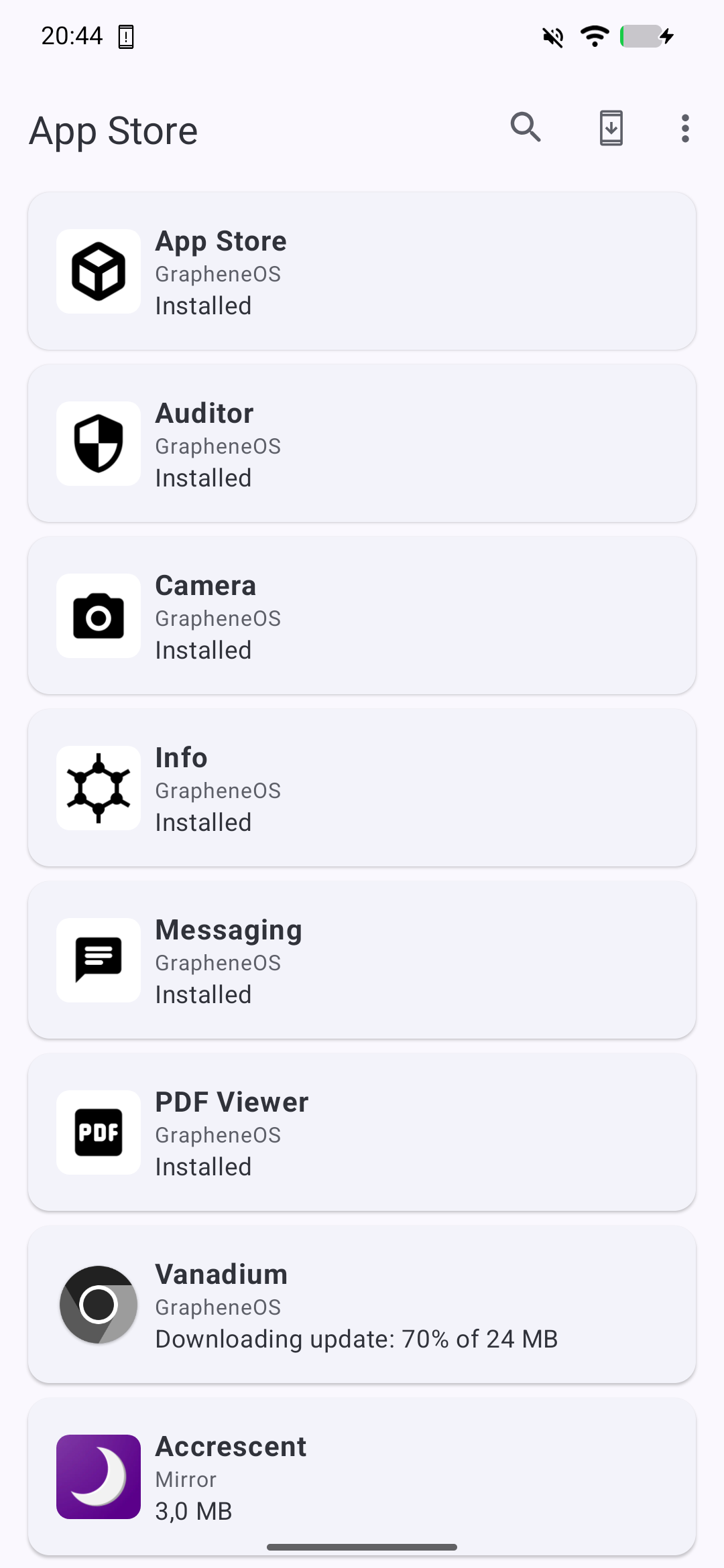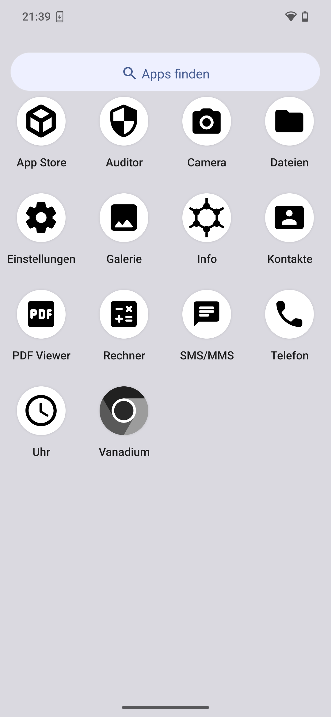 - Vanadium-Browser – Ein gehärteter Browser auf Chromium-Basis, standardmäßig installiert